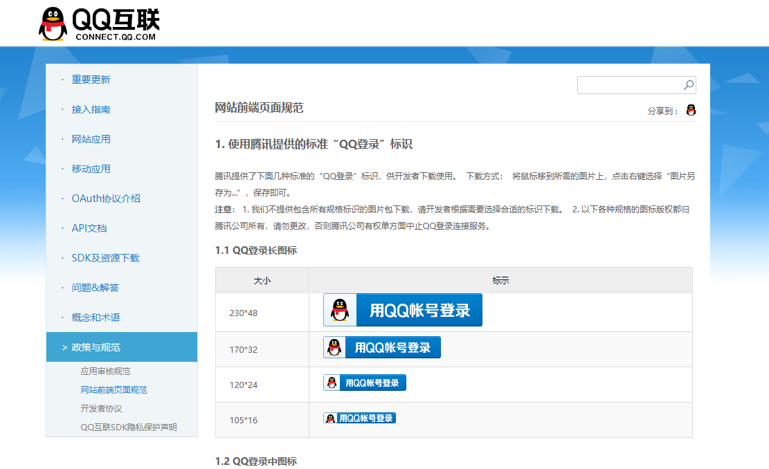 登录图片需要在QQ互联官网进行下载 选择自己合适的尺寸即可