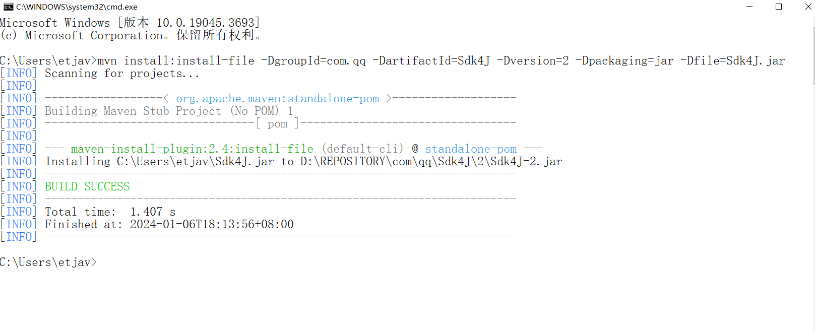 执行 mvn install:install-file -DgroupId=com.qq -DartifactId=Sdk4J -Dversion=2 -Dpackaging=jar -Dfile=Sdk4J.jar即可