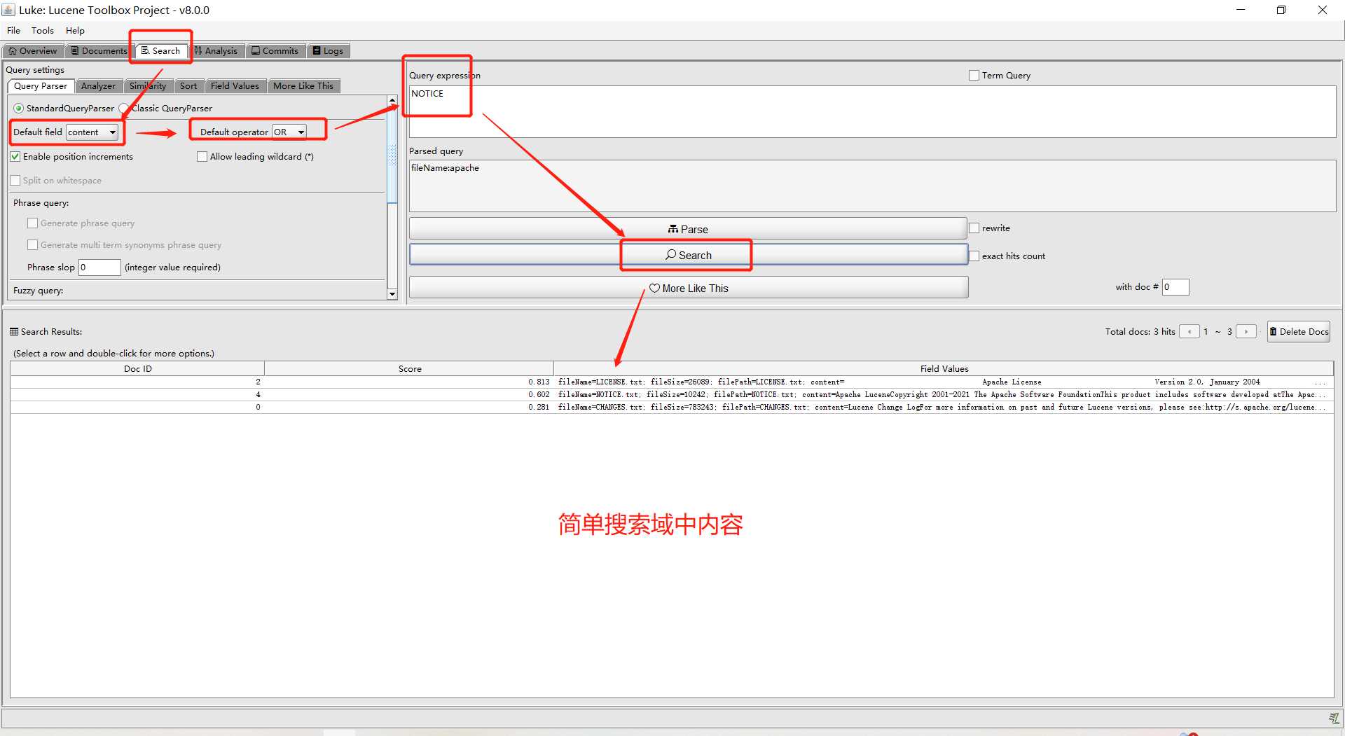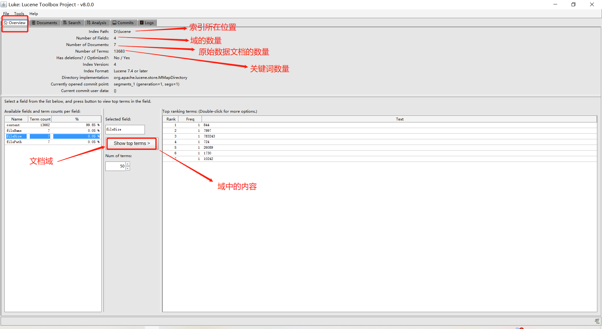 luke工具是用来查看索引库中数据相关信息,类似PLSQL等数据库连接工具 luke使用时需要注意版本匹配 (7.4之后的版本使用8.0) luke下载地址:https://github.com/DmitryKey/luke/releases
