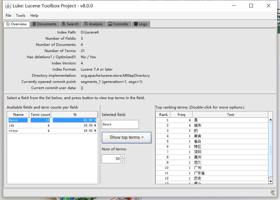 TextField fieldDesc = new TextField("descs",descs[i], Field.Store.YES);