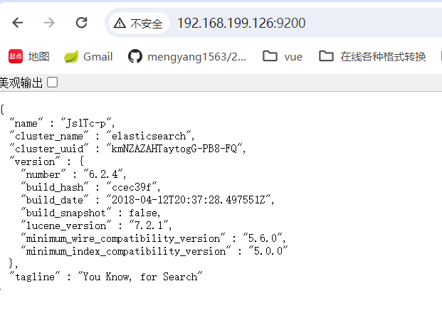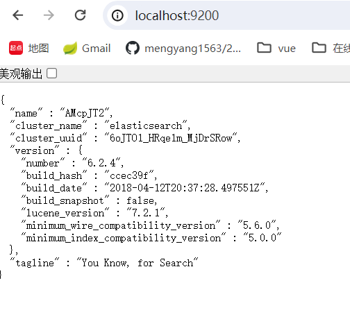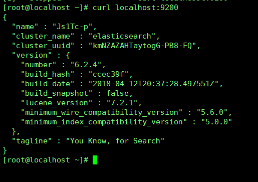 启动后在虚拟机内部测试是否启动成功 curl http://localhost:9200