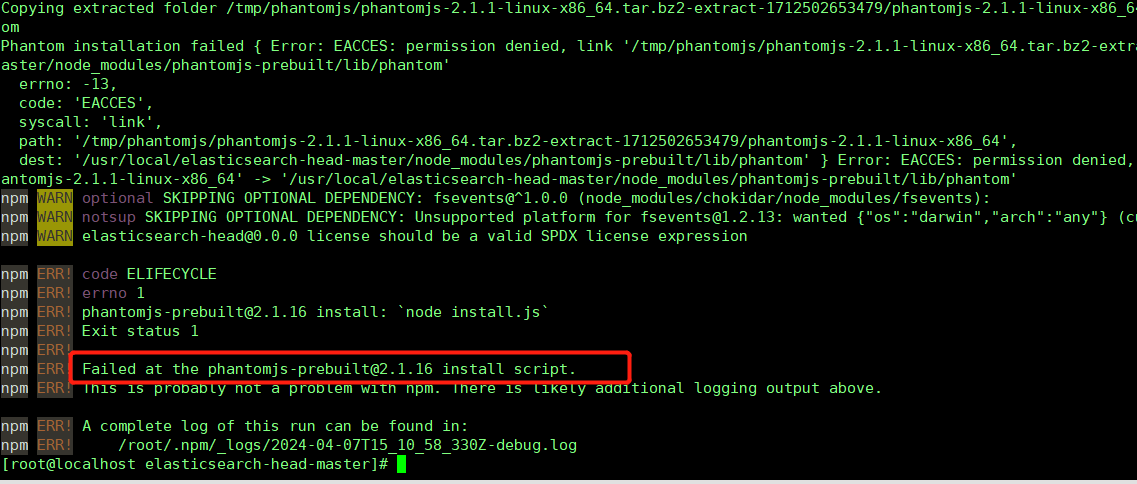 错误pm ERR! Failed at the phantomjs-prebuilt@2.1.16 install script