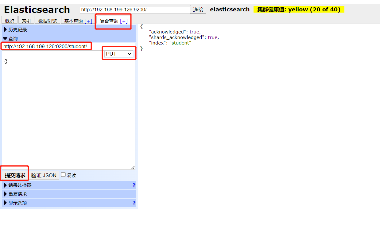 地址栏输入 http://192.168.199.126:9200/student/