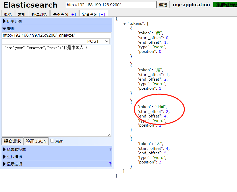 {"analyzer":"smartcn","text":"我是中国人"}