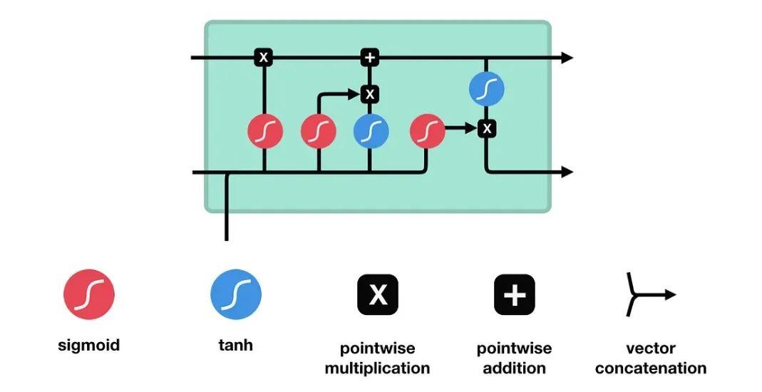 让我们通过一个图示来直观地理解 LSTM 的工作原理。下图展示了 LSTM 单元的内部结构: