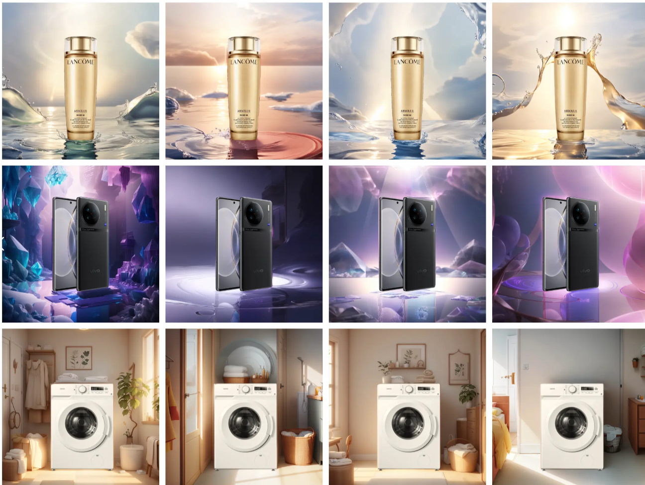 IP-Adapter 的实际用途有很多,比如保留产品样式,替换背景生成海报,根据设计图纸,生成装修效果图,对图片进行人脸替换等等。看看下面的商业海报案例: