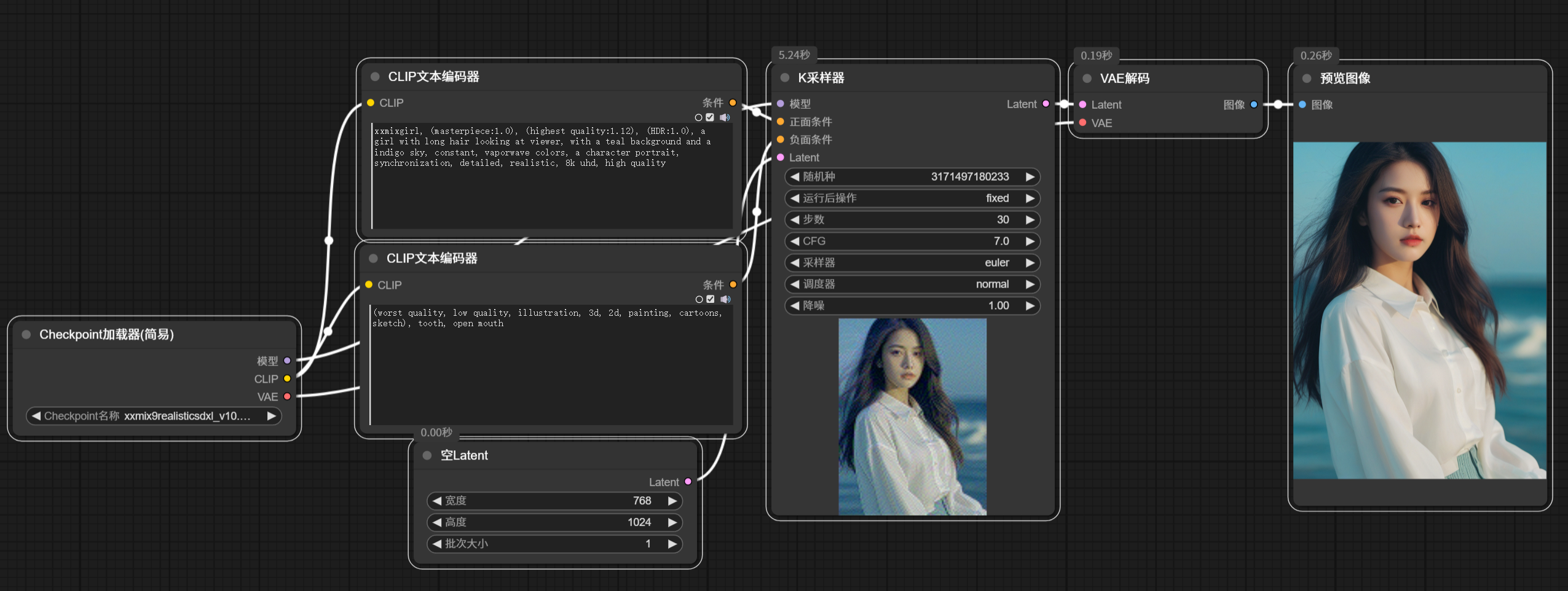 首先我们加载默认的工作流看看效果:
