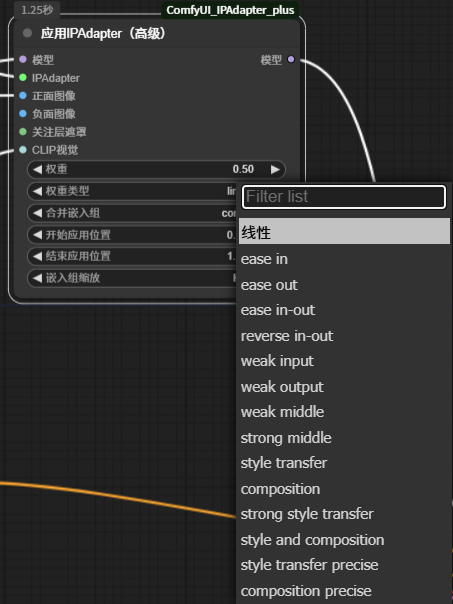 权重类型,可以指导 IPAdapter 不同时机的作用强度,比如图像生成开始和结尾强,中间作用弱等,也可以指导风格参考或者构图参考。这样配合提示词也会生成不同的图片效果。
