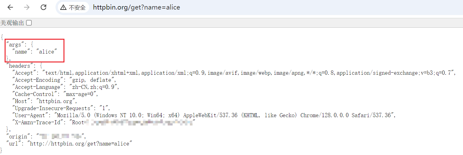 在处理异步请求时,我们期望 Jest 能够等待异步请求结束后再对结果进行校验。测试请求接口地址使用 http://httpbin.org/get,可以将参数通过 query 的形式拼接在 URL 上,如 http://httpbin.org/get?name=alice。这样接口返回的数据中将携带 { name: 'alice' },可以依此来对代码进行校验。