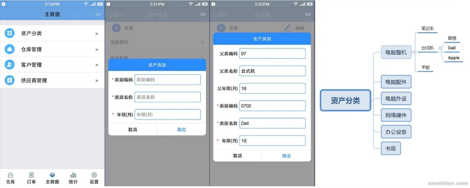 每类主数据支持三级分类,例如:资产分类 -> 电脑整机 -> 台式机 -> 联想。
