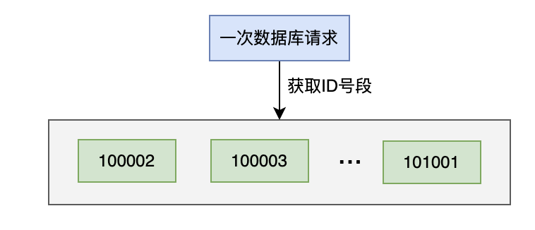一次生成一定步长的ID,比如:步长是1000,每次数据库自增1000,ID值从100001变成了101001。