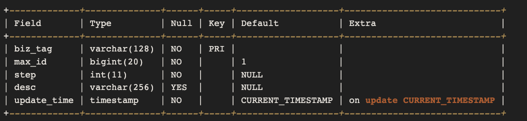biz_tag用来区分业务,max_id表示该biz_tag目前所被分配的ID号段的最大值,step表示每次分配的号段长度。