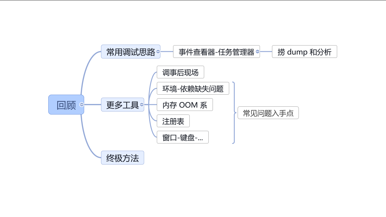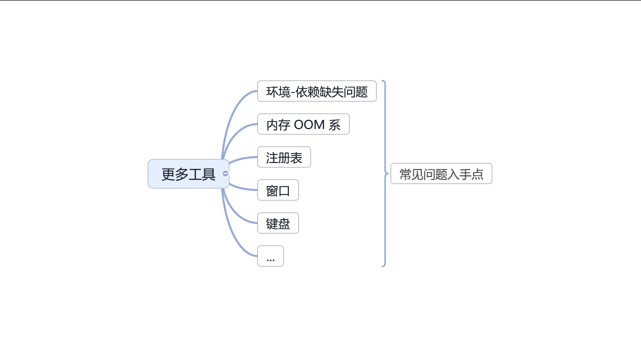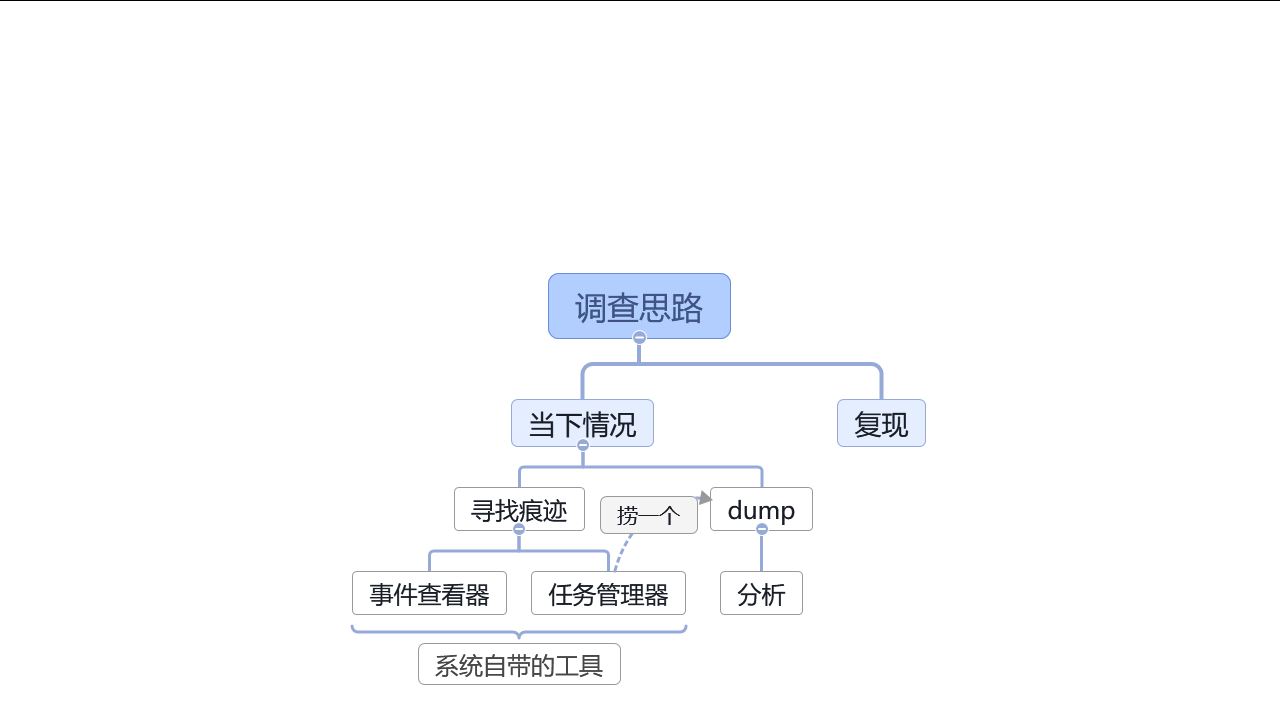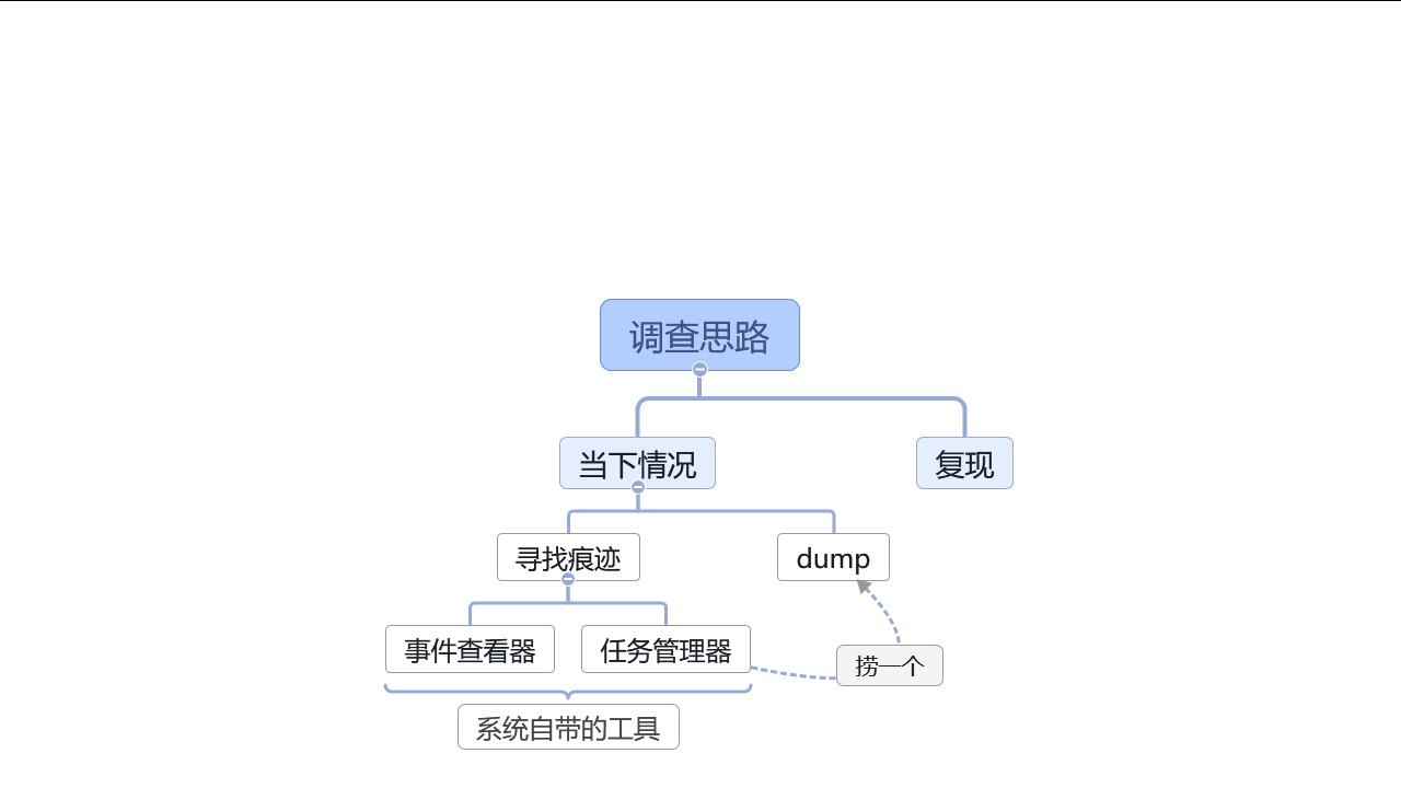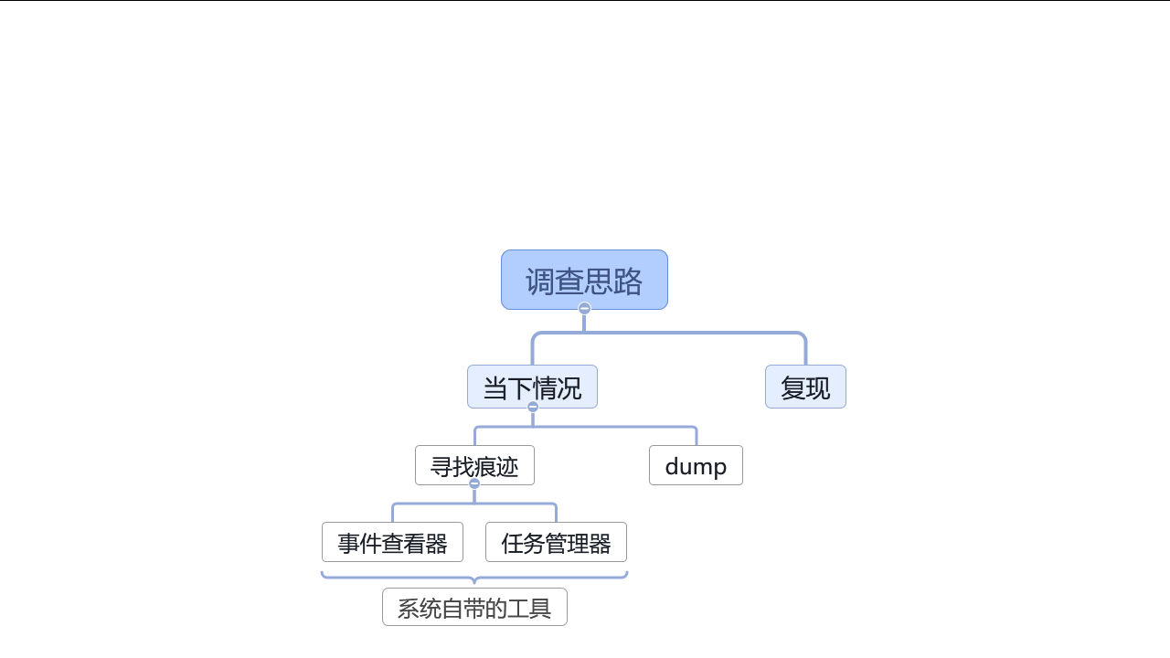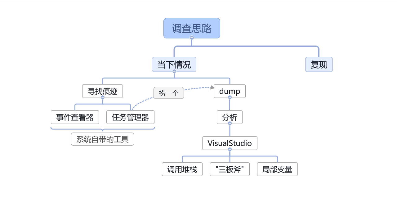 复现问题时,不仅只有 ProcDump 工具。还有可能面对的是事后现场的情况,此时需要使用更多的工具来辅助定位问题。以及当没有调查思路时,可以试试常见的问题的探索帮助寻找思路