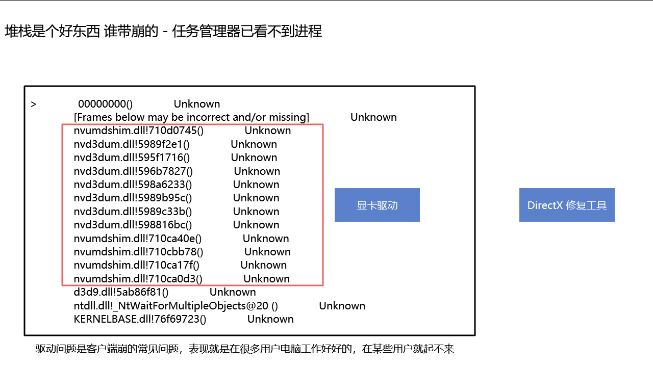 驱动问题是客户端崩的常见问题,表现就是在很多用户电脑工作好好的,在某些用户就起不来