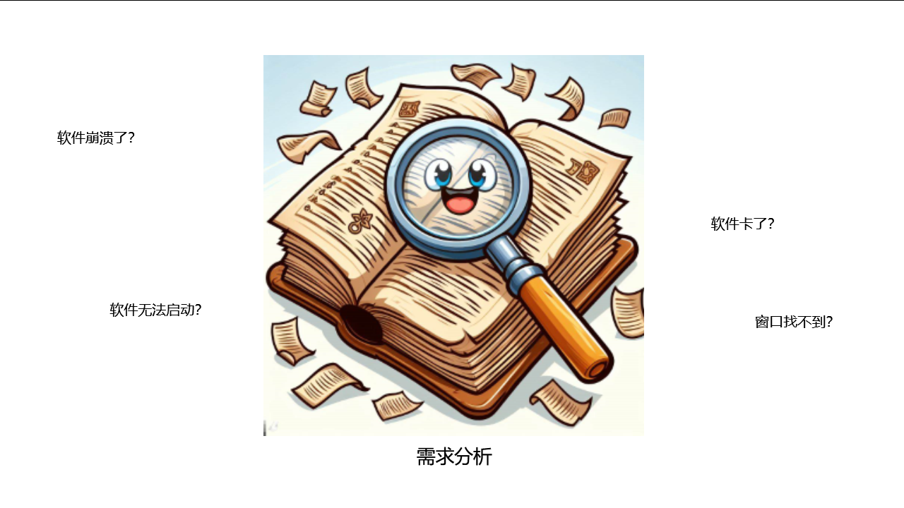 学过软件工程的同学应该有不少,软件工程里面应该会有提到,开发的第一步也是非常关键的一步就是需求分析。当收到用户反馈说软件用不了时,用户在说什么呢?是不是可能是软件崩溃了?还是软件无法启动?还是其他的问题