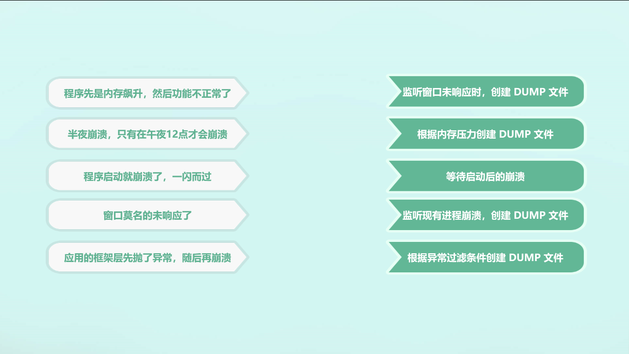 无论是何种情况,都可以试试捞一个 DUMP 回来调试看看。当然了,对于软件崩掉的情况,先尝试一下是不是能启动起来,拼手的速度快速捞一个 DUMP 回来,如果不能,那后文还会和大家介绍其他工具来辅助捞 DUMP 文件