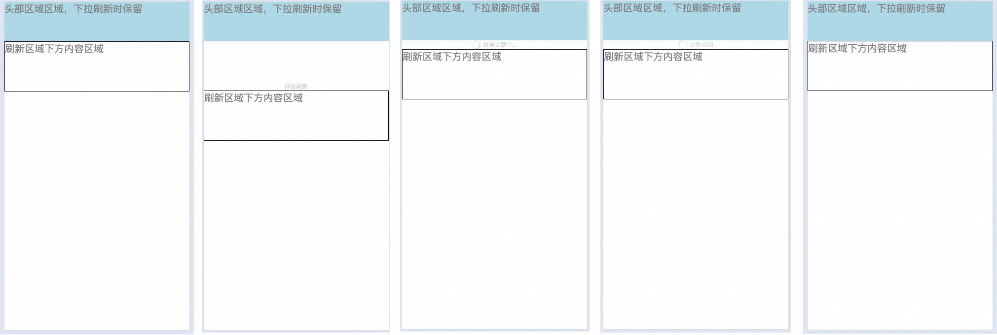 正常数据展示状态 --> 手指触摸屏幕下拉 --> 手指松开 --> 数据获取 --> 恢复正常数据展示状态