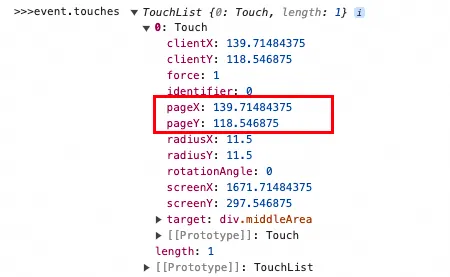 手指触摸到屏幕的逻辑非常简单,使用 startTouch 对象来记录触摸的位置,包含 x 、y 轴。