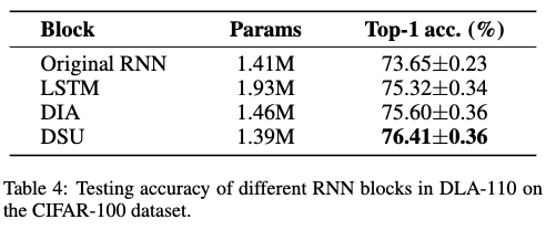 提出了一种新颖的RNN模块,称为动态共享单元(DSU),它被设计为DLA的适用组件。它有效地促进了DLA内部信息的动态修改,并且在逐层信息集成方面表现出色。