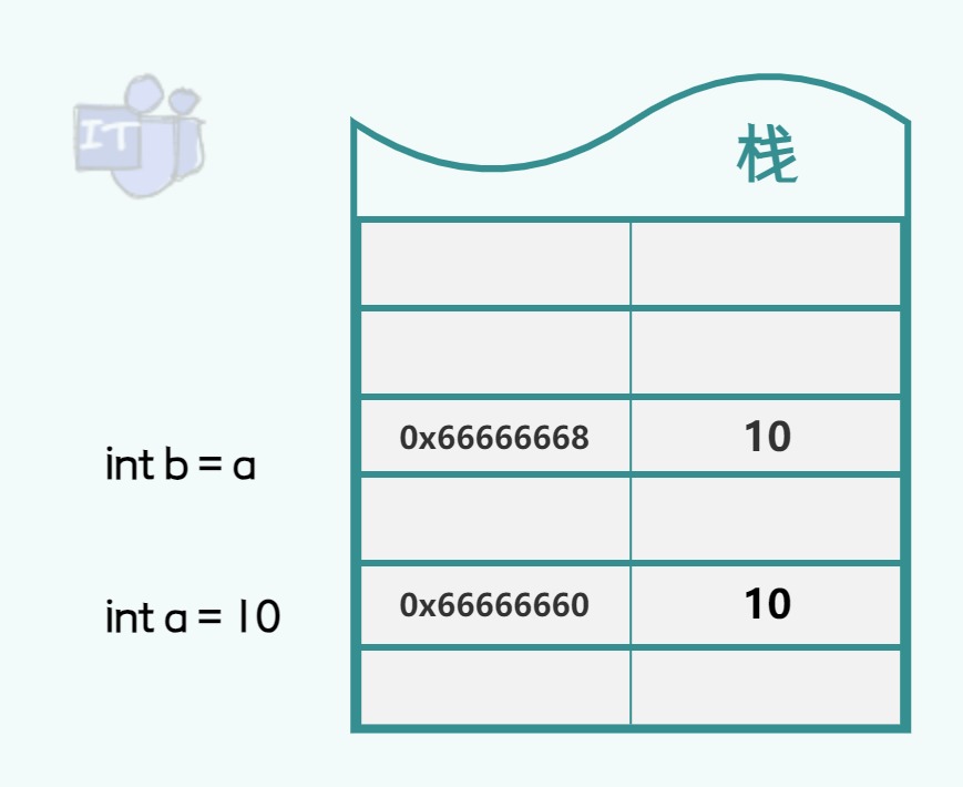 传递值类型变量的副本就是相当于在栈上,又复制了一个同样的值,而且内存地址还不一样,所以互不影响。如下图把a赋值给b,则b直接新开辟了一个栈空间,虽然a和b都是10,但是它们在不同的地址空间中,因此如果他们各自被修改了,也互不影响。