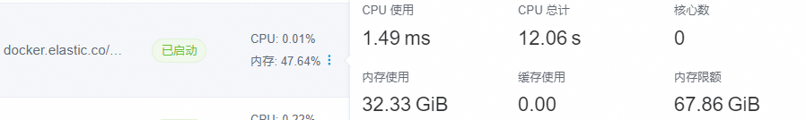 修改.env文件,根据自己内存资源进行设置,我就设置了70G,es默认吃一半