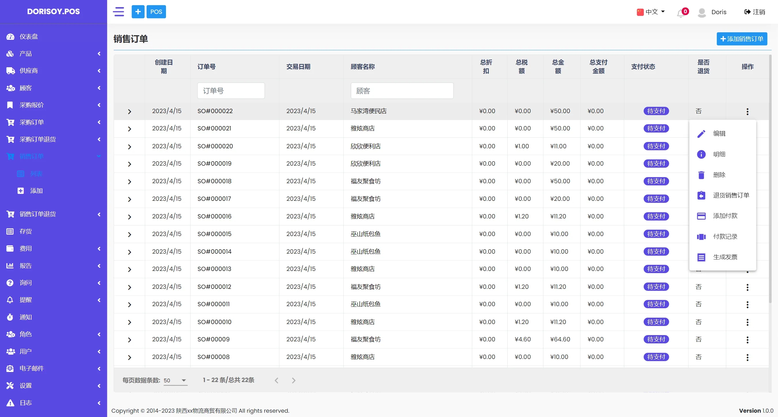 Dorisoy.POS 是一款基于 .NET 7 和 Angular 4 开发的新零售快消进销存管理系统。