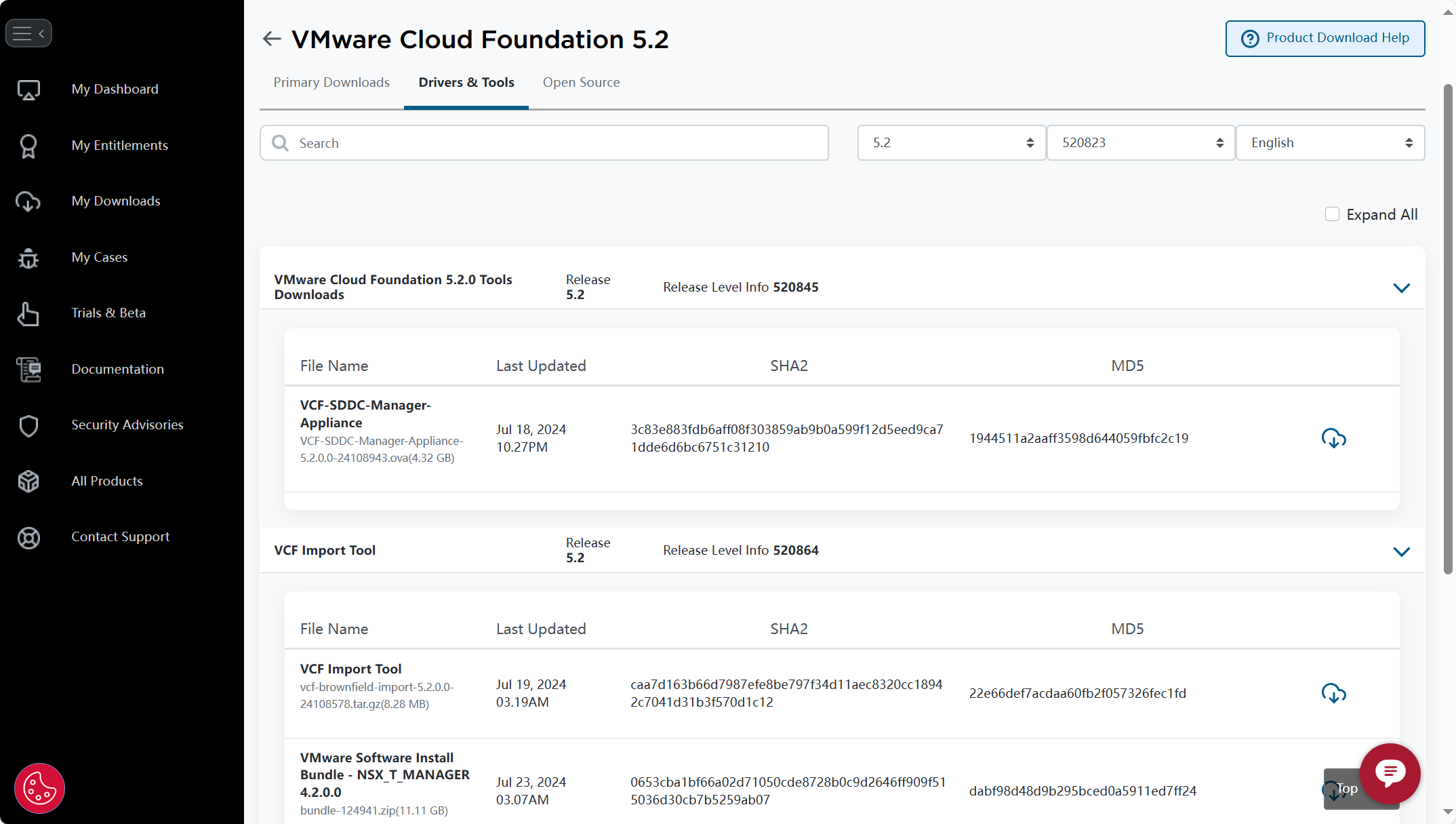 | VCF-SDDC-Manager-Appliance-5.2.0.0-24108943.ova | 1944511a2aaff3598d644059fbfc2c19 | https://pan.baidu.com/s/1lUbrN0zjLUUC1oB8L7ZRAg?pwd=lvx9 |