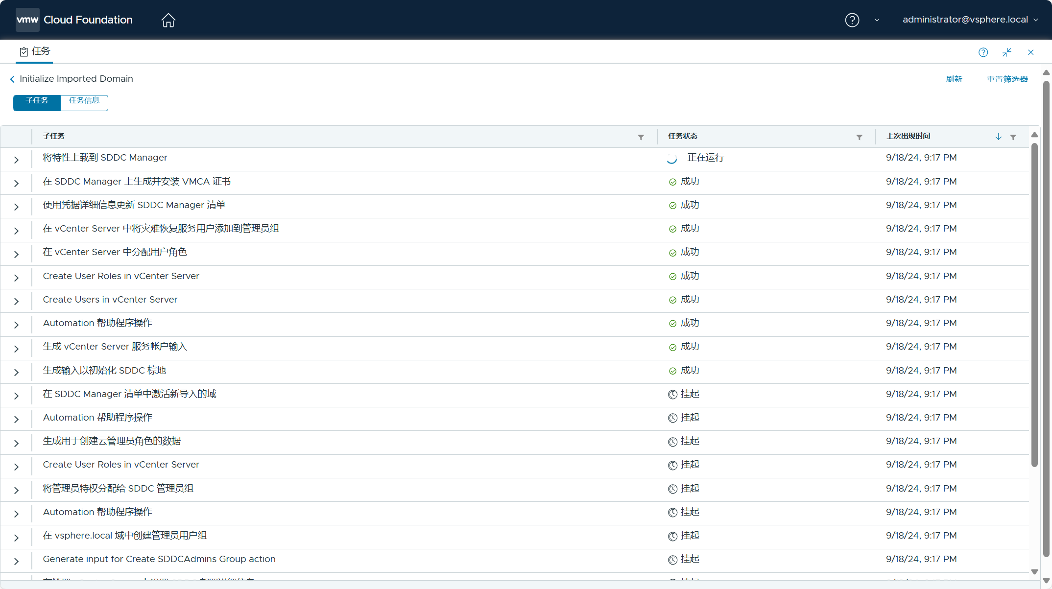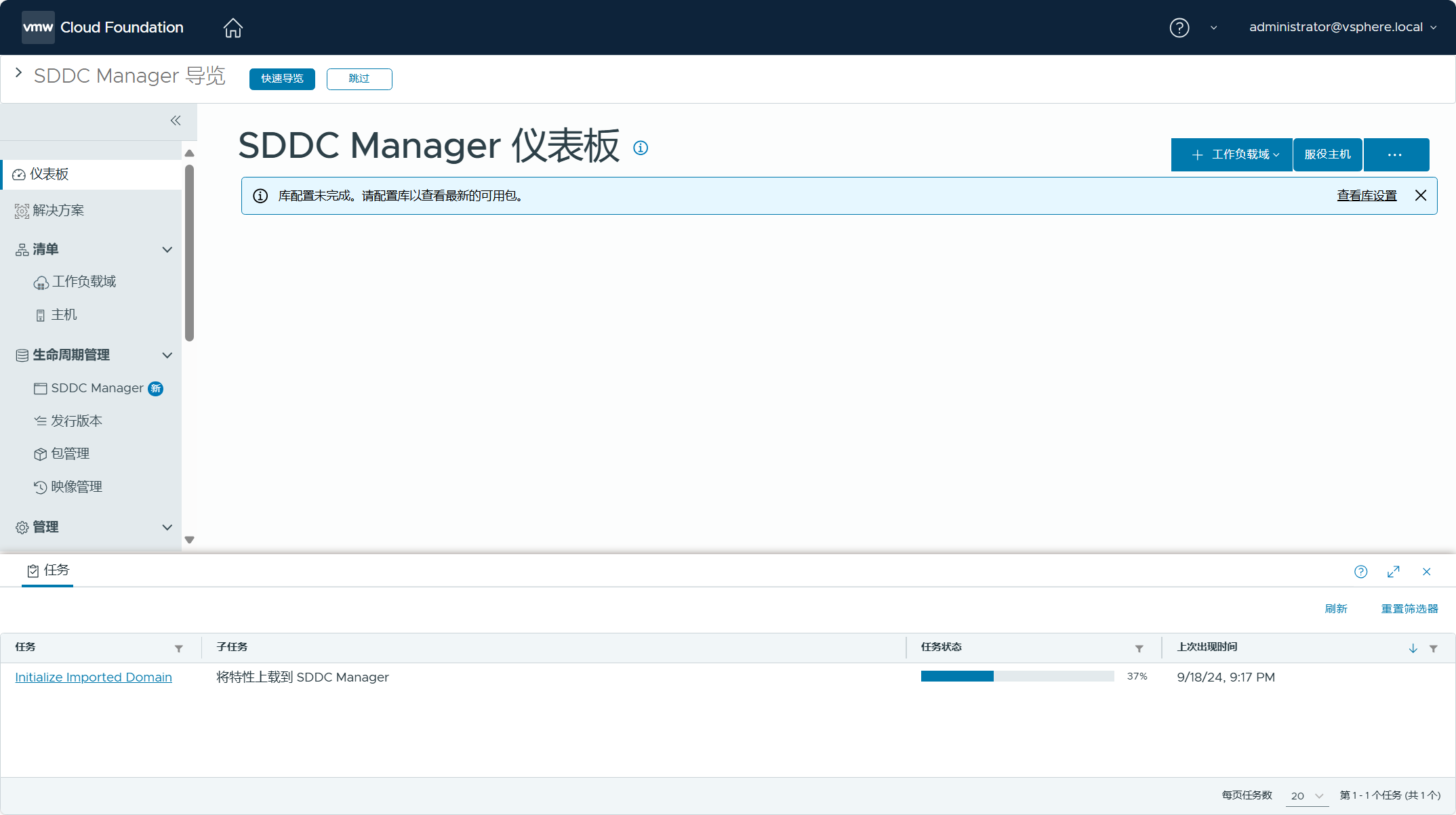 此时,可以登录 SDDC Manager UI 查看任务执行的状态。