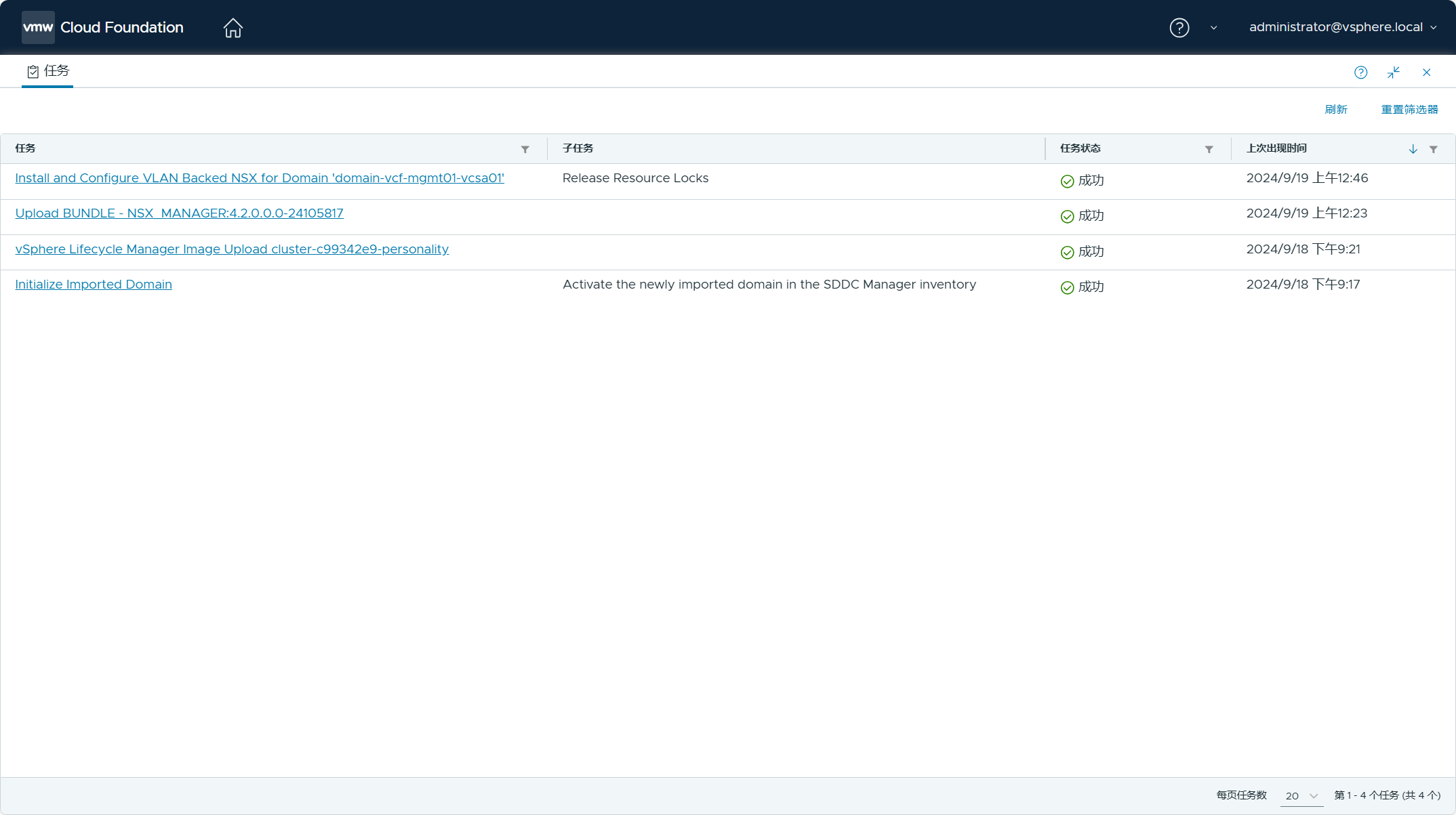 通过 SDDC Manager UI 查看任务状态,结果也是成功。