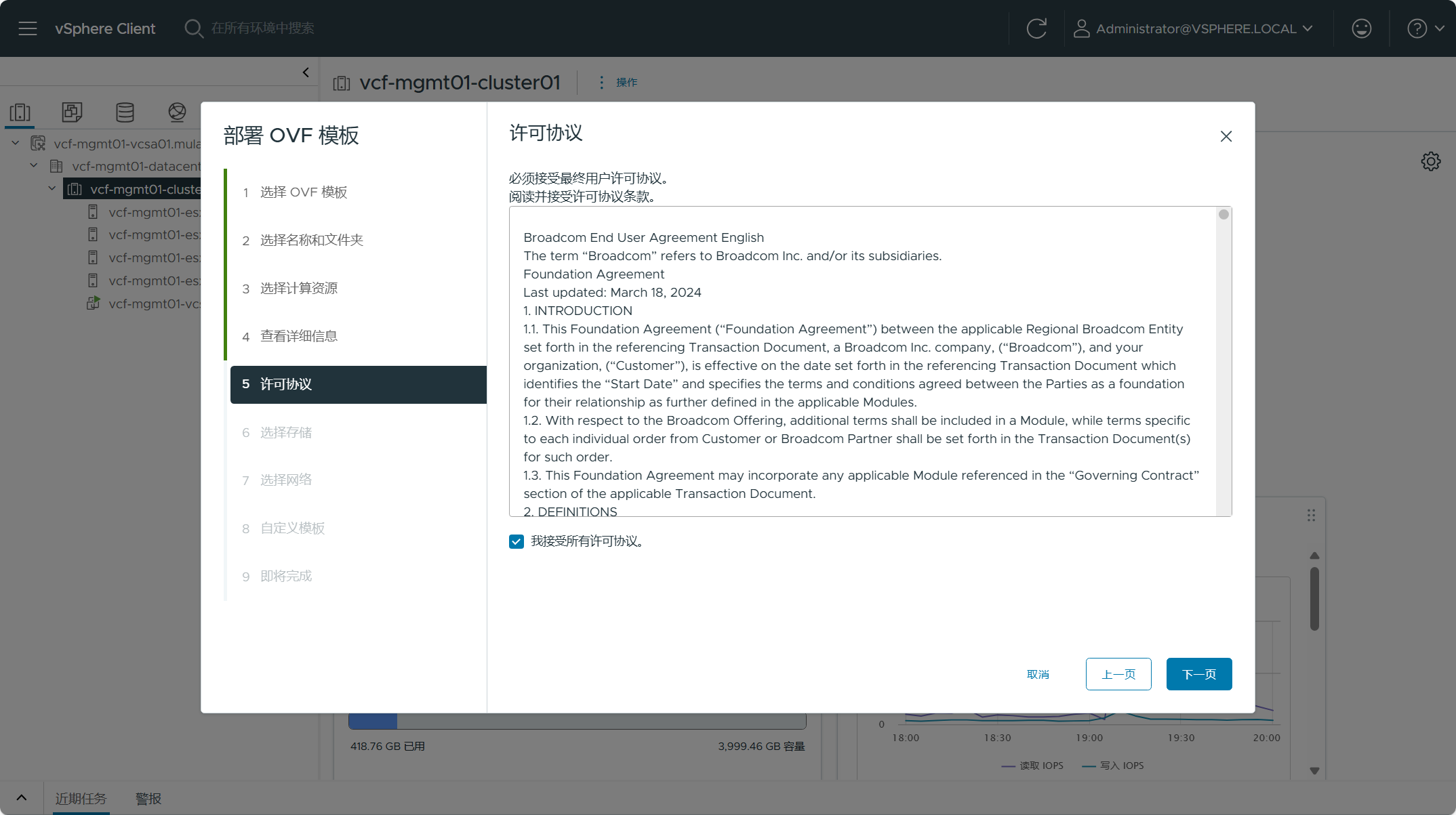 接受 SDDC Manager 安装许可协议,点击下一页。