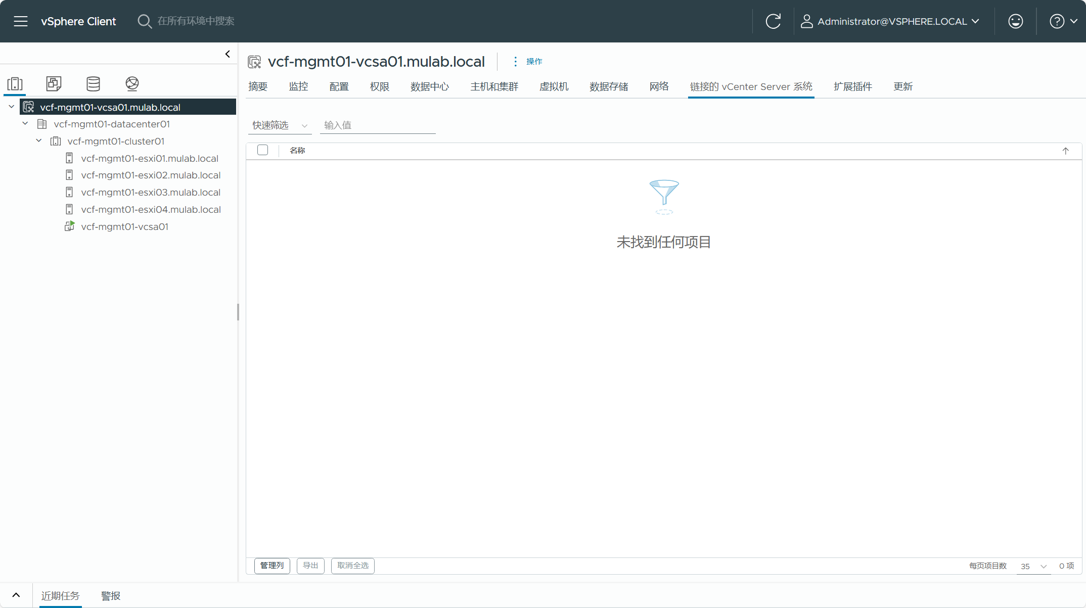 现有 vSphere 集群的 vCenter Server 不能配置增强型链接模式(ELM),否则当前 VCF Import Tool 版本不支持。