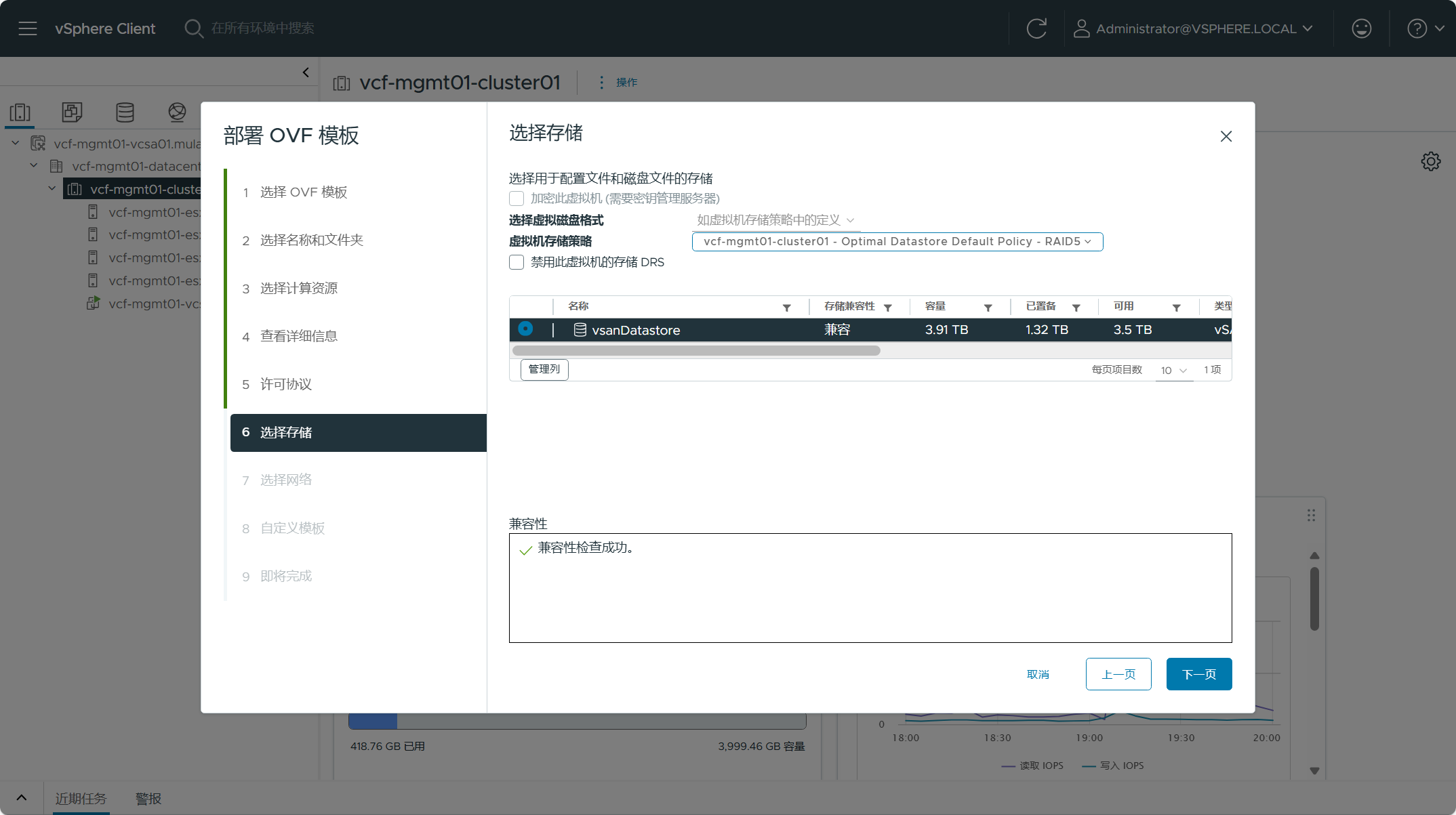选择 SDDC Manager 虚拟机所使用的存储,点击下一页。