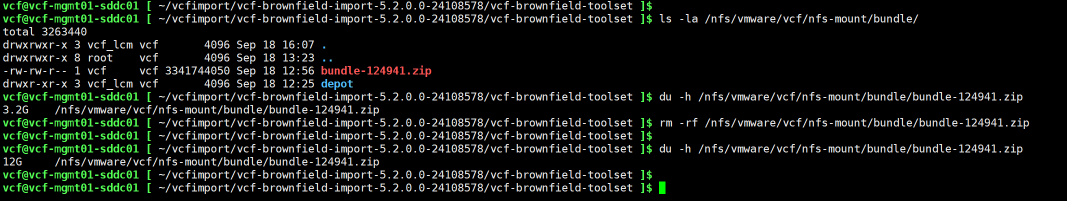 cd /home/vcf/vcfimport/vcf-brownfield-import-5.2.0.0-24108578/vcf-brownfield-toolset/