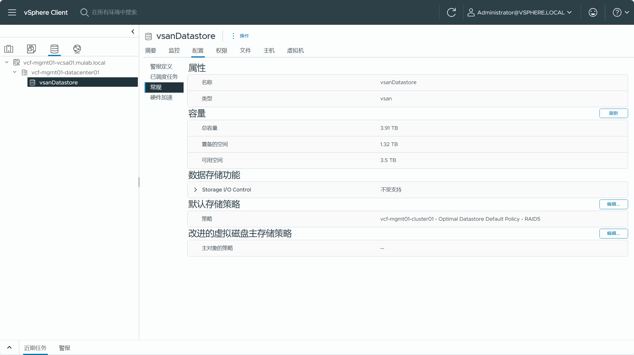 现有 vSphere 集群所使用的 vSAN 存储。