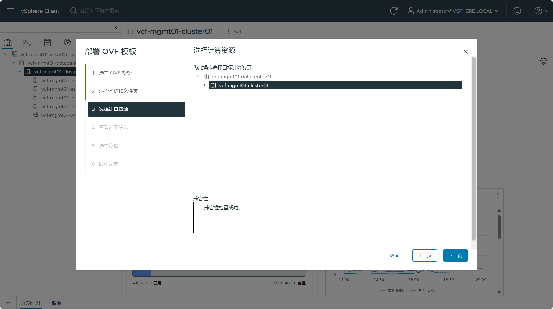 选择 SDDC Manager 虚拟机所使用的计算资源,点击下一页。