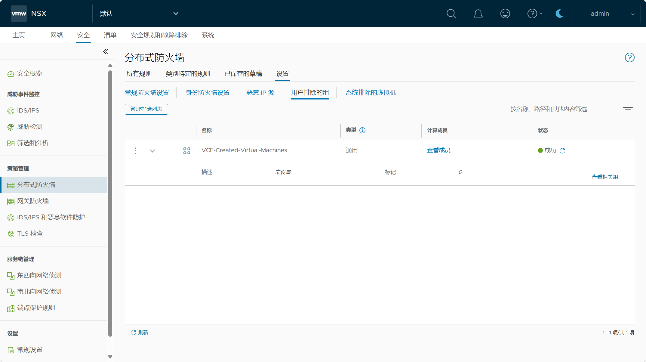 注意,在制定 NSX 安全策略之前,请确保将关键管理虚拟机列入白名单或进行排除,以避免出现锁定情况,你也可以为不是管理组件的虚拟机单独创建 DFW 排除列表。