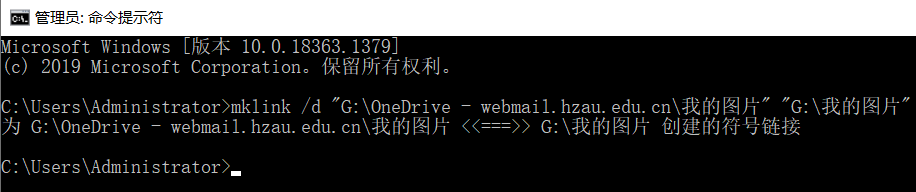 mklink /d "G:\OneDrive - webmail.hzau.edu.cn\我的图片" "G:\我的图片"