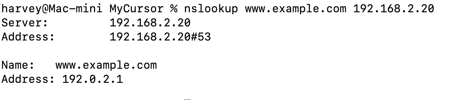 nslookup www.example.com 192.168.2.20