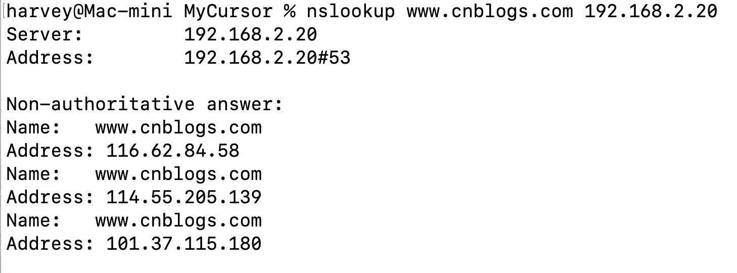 nslookup www.cnblogs.com 192.168.2.20