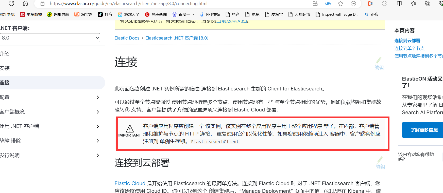 这里我采用的sdk的版本是Elastic.Clients.Elasticsearch, Version=8.0.0.0,官方的网址Installation | Elasticsearch .NET Client [8.0] | Elastic