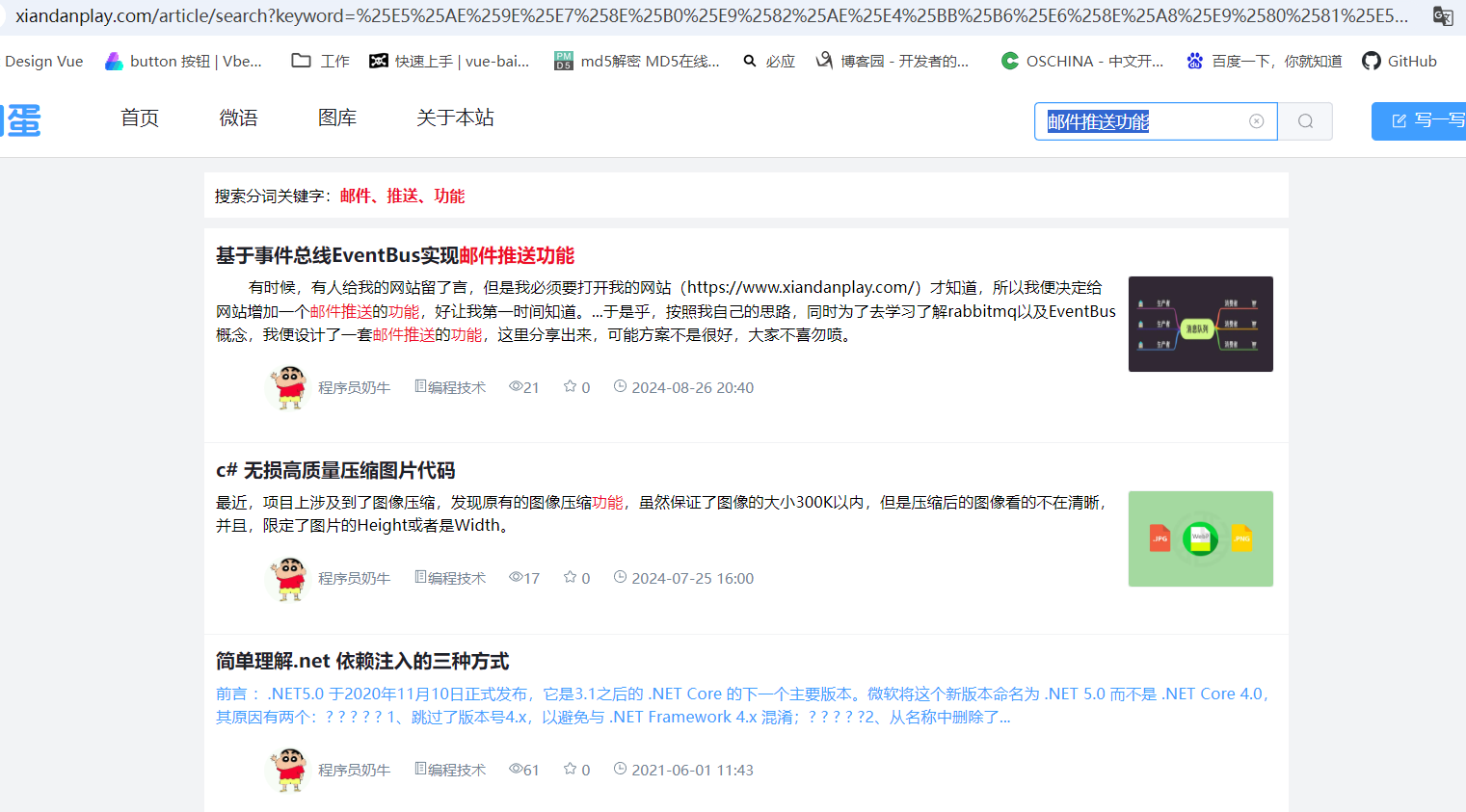 然后就是同步文章到es了,我是先写入数据库,再同步到rabbitmq,通过事件总线(基于事件总线EventBus实现邮件推送功能)写入到es