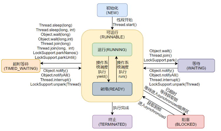 | 设置了 Timeout 参数的 Object.wait() 方法 | 时间结束 / Object.notify() / Object.notifyAll() |