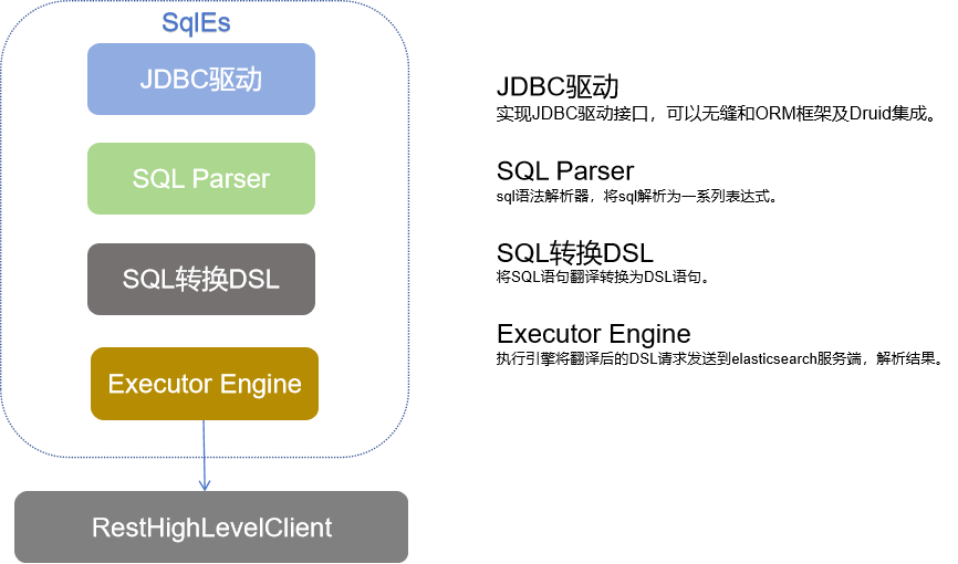 SqlEs实现了JDBC驱动,可以无缝和其他ORM框架,数据库连接池集成。