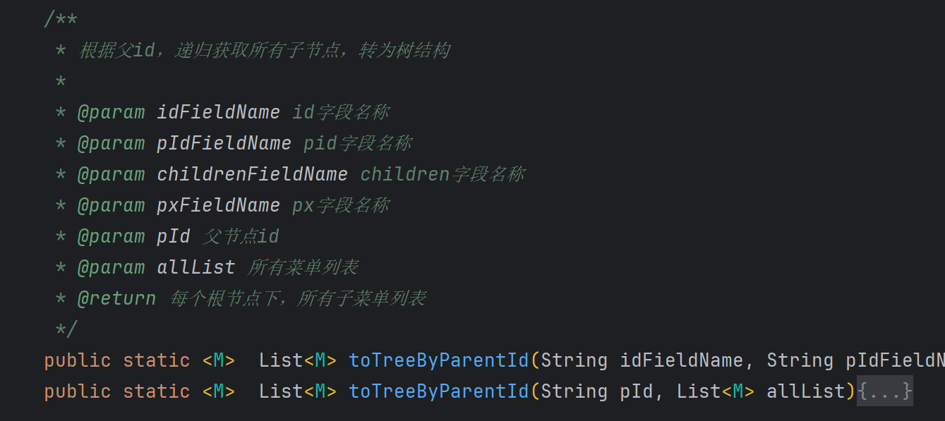 日常开发中,树形结构的数据是比较常见的一种数据结构,比如系统菜单、组织机构、数据字典等,有时候需要后端把数据转成树形结构再返回给前端,对此特意封装通用树形结构工具类