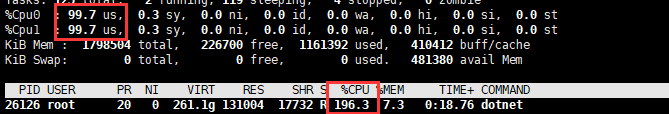 查看服务器核心数 是在16个. Linux用top命令看的话,理论上CPU跑到1600%才算吃满,但是程序只吃了单个核.