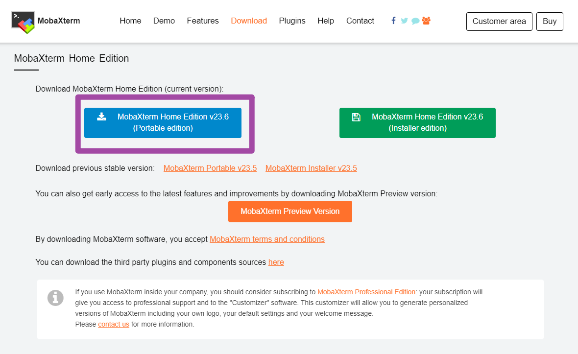 首先,我们需要进行MobaXterm软件的下载与安装。我们直接在这一软件的官方网站,来下载软件即可。如下图所示,进入网站后,选择上方的“Download”选项,然后下载左侧的“Home Edition”版本即可——这个版本是免费的,其可以满足一般情况下我们所有对于远程服务器的控制需求了。