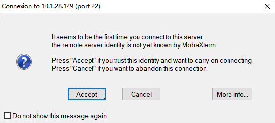 随后,因为是第一次在这台电脑上连接这个服务器,所以会有一个如下图所示的提示窗口;选择“Accept”选项即可。