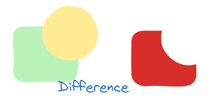 Difference:从形状A中减去与形状B相交的部分Exclusion:减去形状A和形状B相交的部分,保留不同的部分Intersection:保留所有形状间的交集Union:保留所有形状的并集Difference的主要参数有: