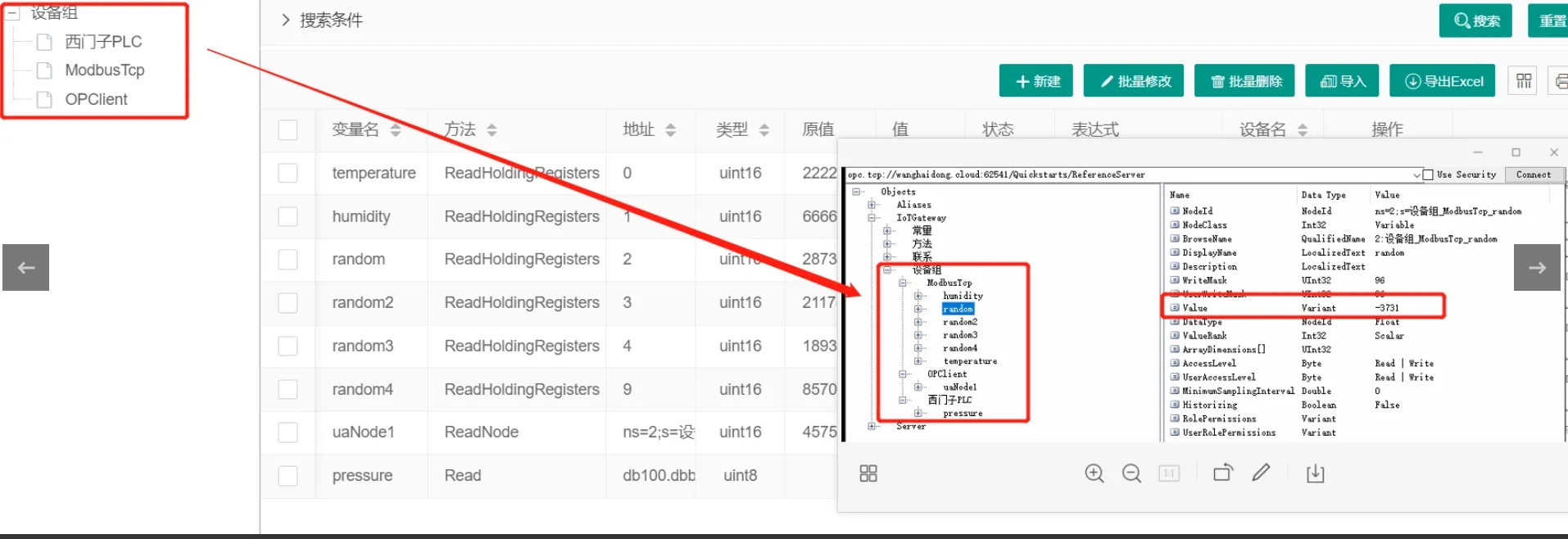 内置Mqtt服务端,OPCUA服务端,轻松的与MES、SCADA交互数据. 支持IoTSharp、ThingsBoard等私有云平台. 支持RPC指令,反向数据写入.