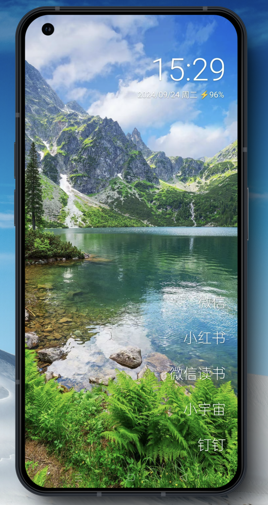 且应用出口的显示就是纯纯的应用名称,整个屏幕只有三部分组成,壁纸、几个主要应用入口和日期显示,且日期还可以不显示。
